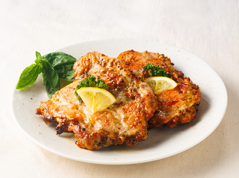 さっぱりとしたレモンの香りと香ばしい肉汁が食欲をそそります。